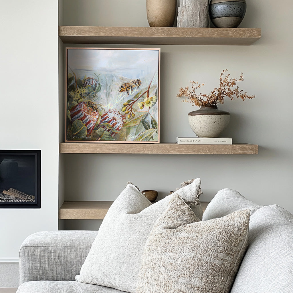 Over recent years, Tammi has been commissioned to create murals throughout the Wheatbelt and other regional areas of Western Australia. These travels allow her to connect directly with the land and its communities, gathering visual reference and inspiration that she brings back to the studio. Through her paintings, she aims to offer viewers a moment of calm reflection and a renewed appreciation for the natural world.