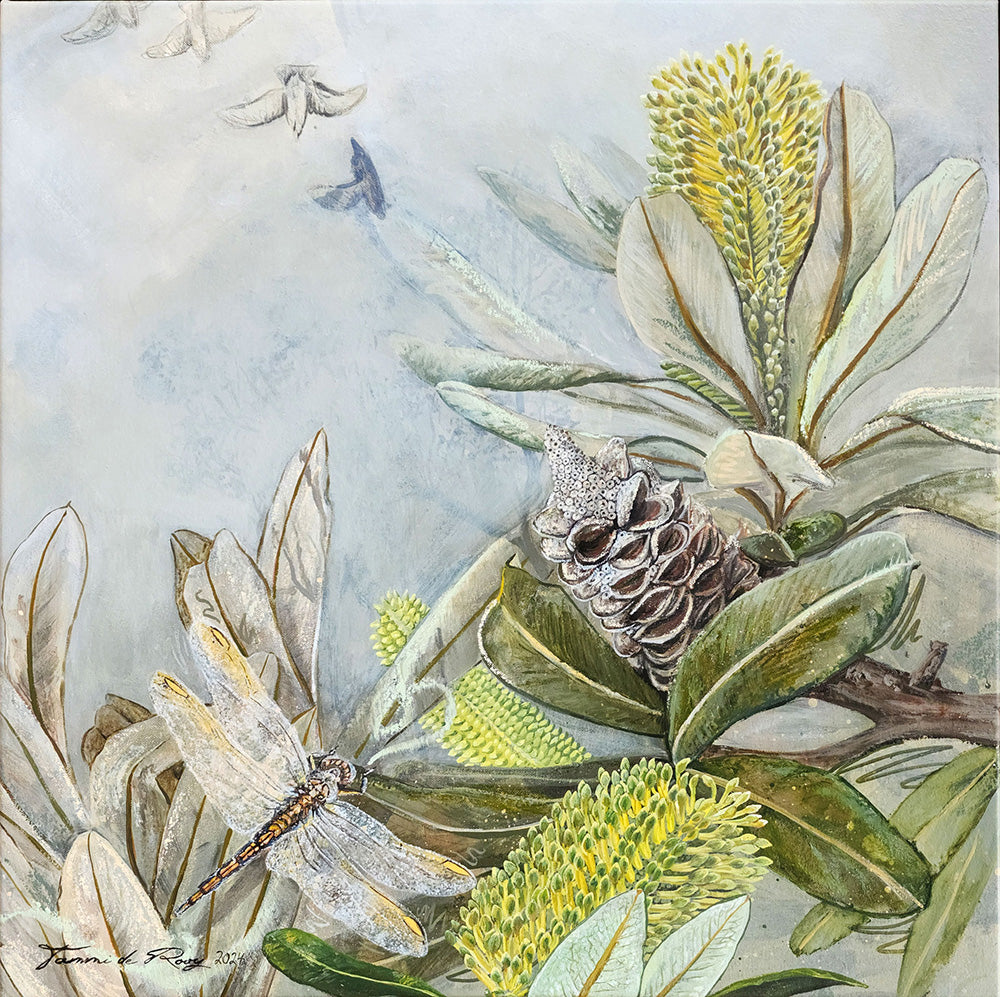 Tammi’s interest in art began at a young age, sketching scenes around her family’s farm. She later studied in the art specialist program at Perth College and earned a degree in graphic design from Curtin University. Her creative journey has also included time spent living in Europe and working as a pastry chef and café owner. After a fire destroyed her business in 2017, she returned to the visual arts full-time—a path that reconnected her with her original passion and purpose.